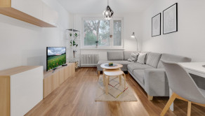 Byt sa predáva s kompletným zariadením, ktoré je na fotografiách, (okrem kuchynského stola so stoličkami ). Obývačka je útulná a kuchyňa je funkčne zariadená s dostatkom priestoru pre odkladanie potravín. Spálňa je priestranná, vzdušná, určená na pokojný oddych a regeneráciu síl. V detskej izbe, alebo pracovni sa môžete ponoriť do pracovných povinností poprípade sa hrať s deťmi.
