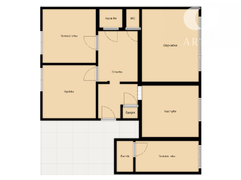 - kuchyňa so vstupom do menšej detskej izby s vlastným šatníkom